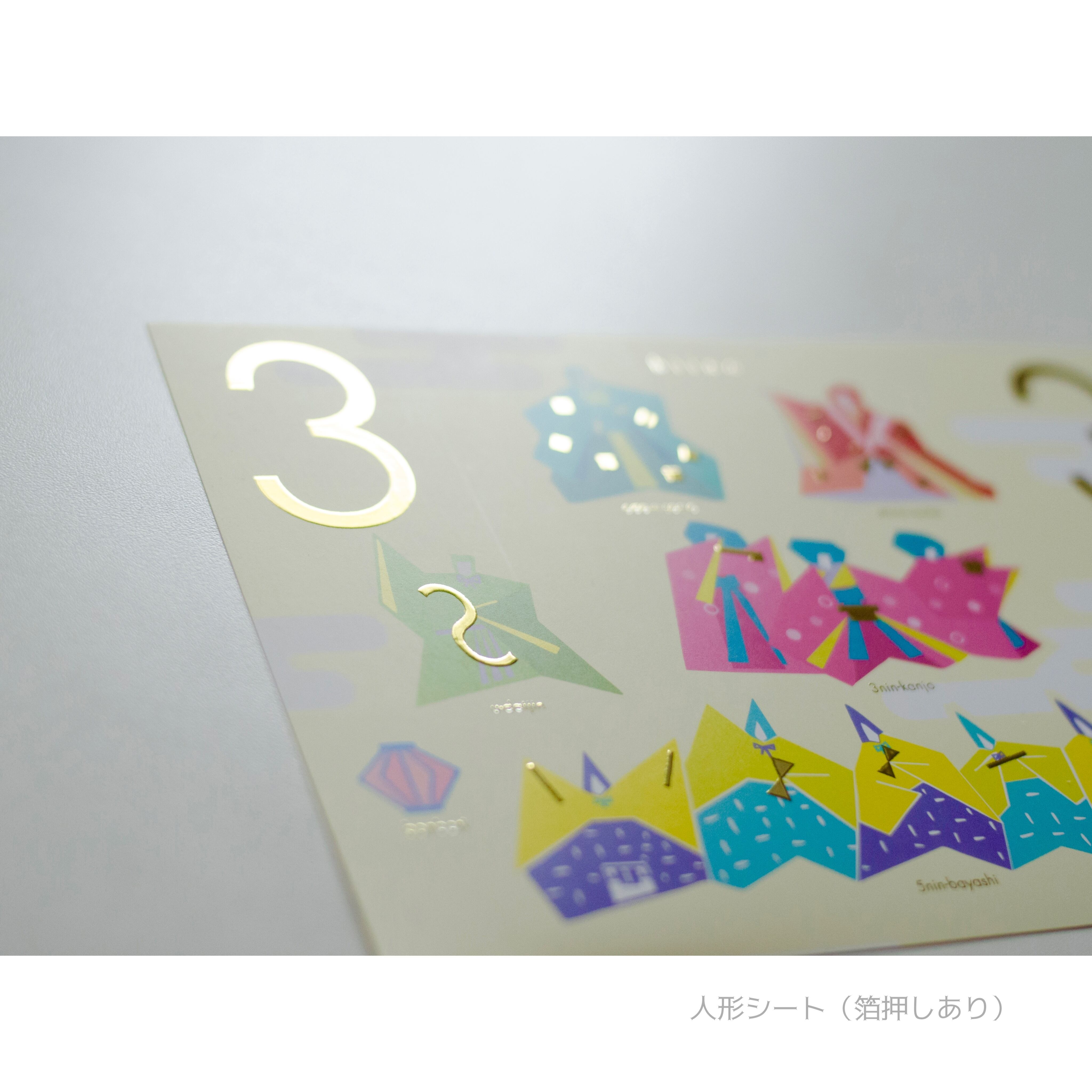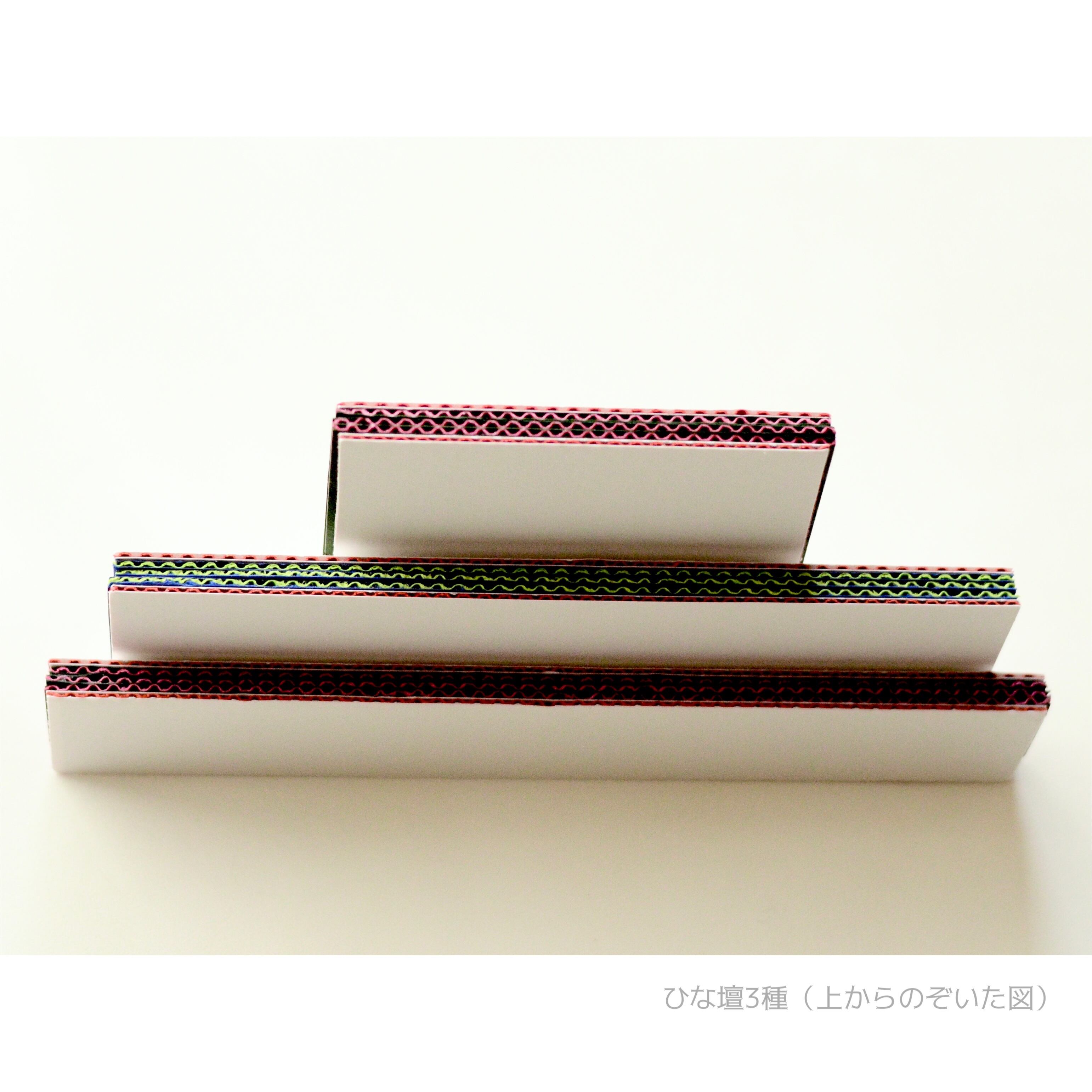 ひな壇(3段)、人形シート、楊枝、透明シール、桃の花、お人形道具一式(烏帽子、柄杓、扇、矢)ひな壇用巻紙3種